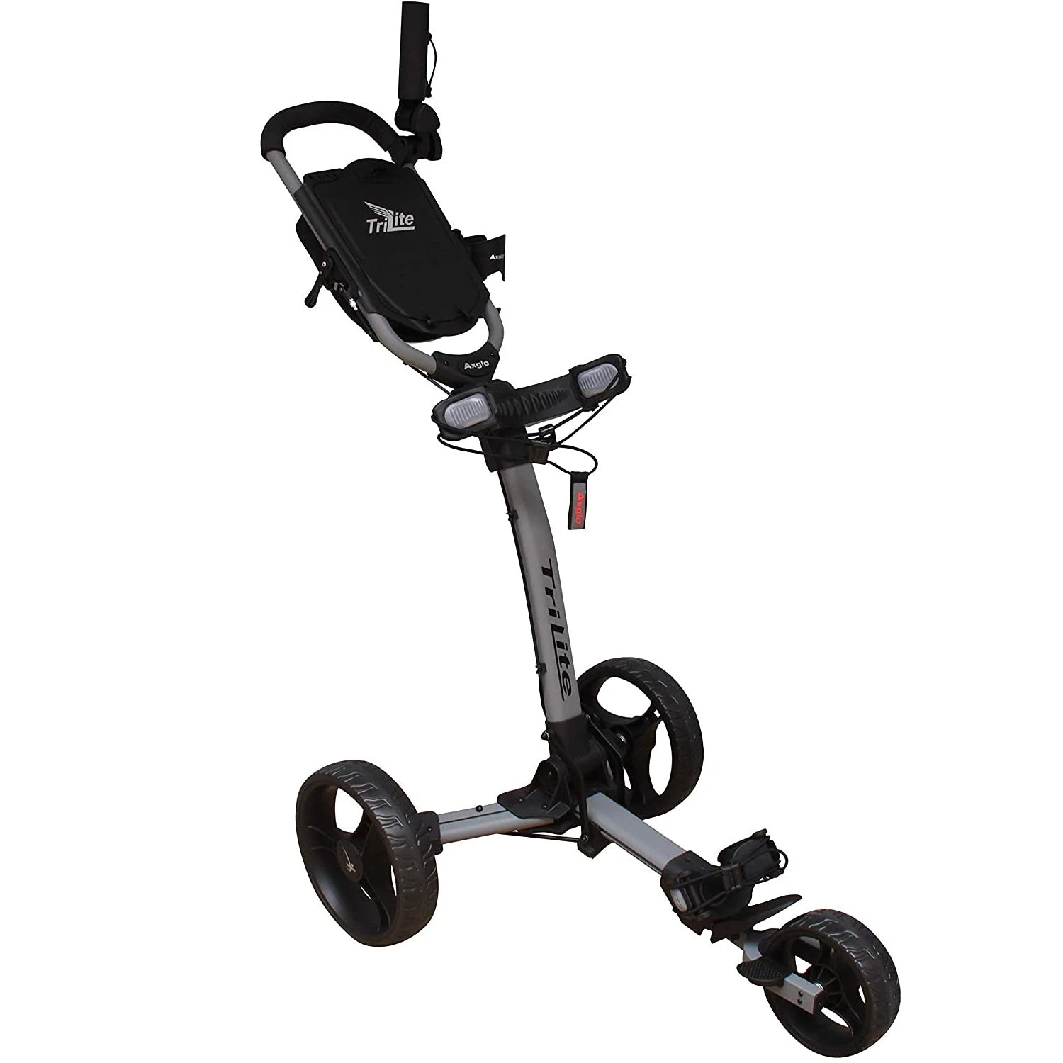 Light and smooth to push on the golf course, this push cart features a unique gliding system design that will simply help you transport your golf bag. Bag holding rack supports most golf bags of different sizes and has an adjustable bag strap to secure the golf bag.