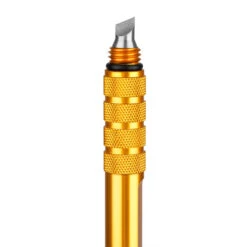 The Dynacraft Golf Groove Sharpener Tour Tool is designed to clean your club’s grooves to provide optimal back spin and control with your irons, wedge and utility clubs. The V-shaped cutting tip is made of high grade steel and most importantly angled to making easier to work the tool back and forth over the face of the club. The knurled handle and protective cap are aluminum for an ergonomic feel and slip resistant grip. Just run this tool down each groove 3 or 4 times and within minutes your worn grooves will be revitalized. The Dynacraft Golf Groove Sharpener Tour Tool comes in a protective storage case and easily fits in your golf bag or can be attached with the key chain included. It is available in five colors (Black, Blue, Gold, Red and Silver) and comes with six ball markers.