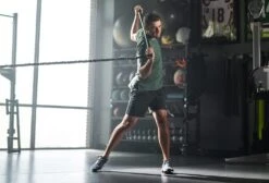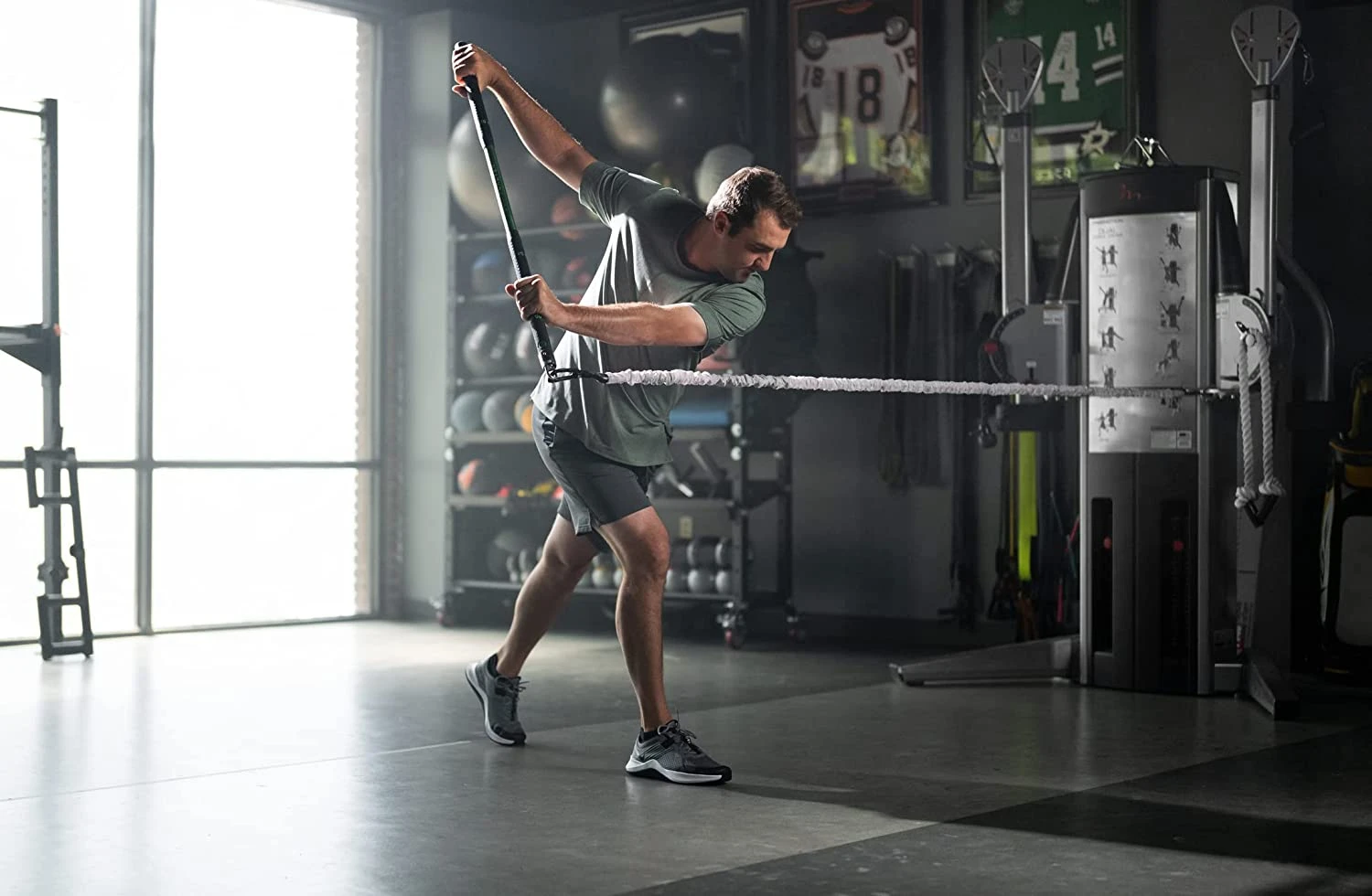 - Durable, 15-pound Latex Training Cord with Nylon safety sleeve which combines with the bar or the included handles to create two distinct golf-exercise tools.