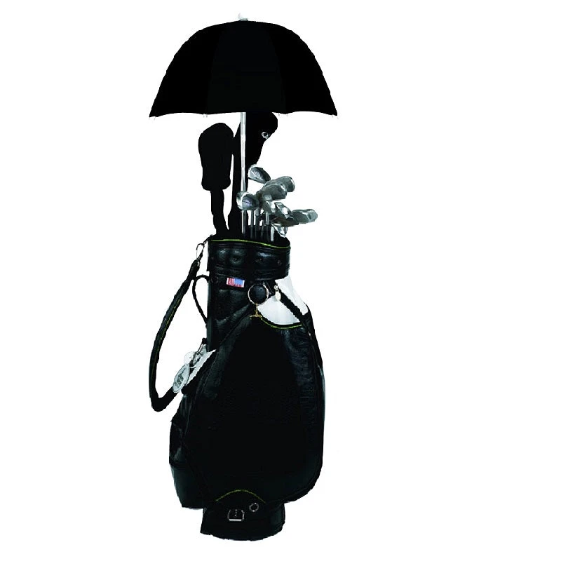 Elevated ribs protect clubs and umbrella frame – Non-slip handle with engraved logo – 100% nylon cover
